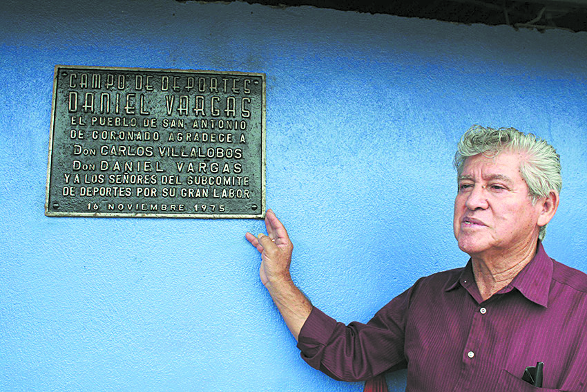 Hace 10 años, Daniel Vargas, uno de los principales gestores de que exista la cancha de San Antonio, vino a una reinauguración de esta y posó ante la placa que en 1975 le dedicaron a él y demás personas que lo acompañaron.
