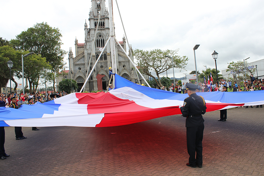 La actividad la abrió, con una oración, el cura párroco de Coronado, Carlos Manuel Jiménez Picado, luego habló Cristian Sánchez, Jefe de la Estación de Bomberos de Coronado, quienes fueron los que se encargaron de instalar la bandera en el asta.