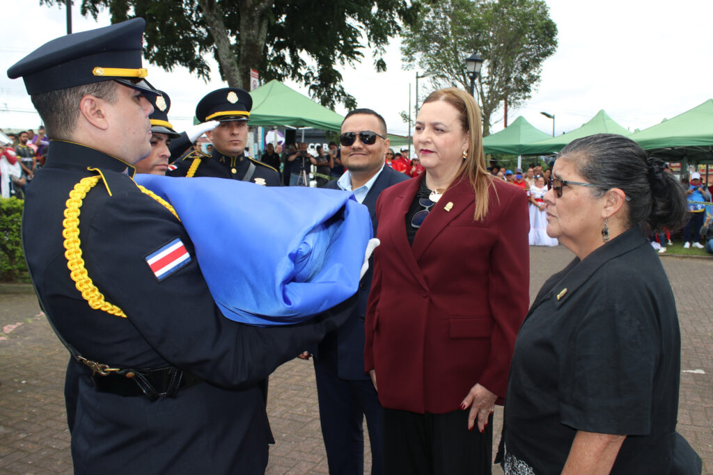 La alcaldesa Yamilet Quesada entregó la bandera a los miembros de la Guardia de Honor de la Fuerza Pública.