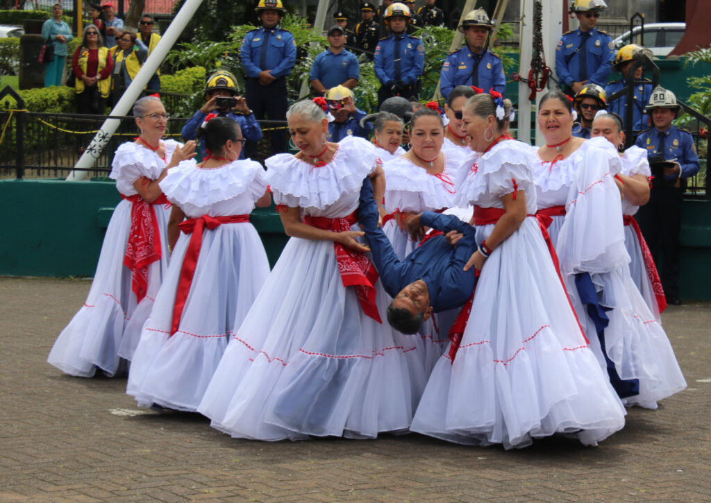 El coplero Walter Quesada entretuvo al público mostrando una gran capacidad para improvisar sus coplas involucrando al público presente, y por último la guardia de honor de la Fuerza Pública recibió la bandera de parte de la alcaldesa, la extendieron y se la dieron a los bomberos para que estos la subieran a lo más alto del asta, donde estará durante todo el mes de setiembre.
