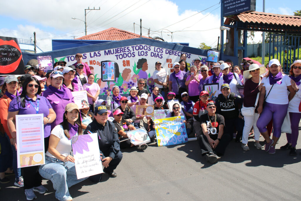 La caminata partió desde la cancha de Dulce Nombre y recorrió el trayecto hasta la entrada de las oficinas del Ministerio de Salud en Coronado, donde se realizó la develación de un mural conmemorativo dedicado a la lucha por los derechos de las mujeres.