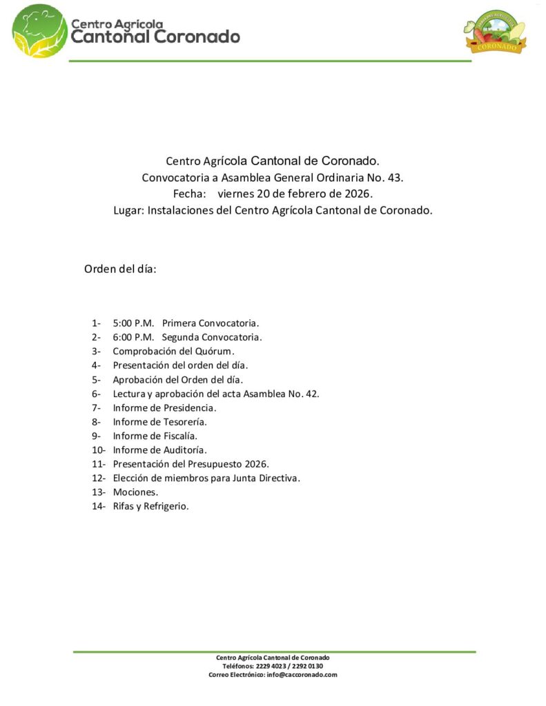 #Novedades Comerciales Convocatoria a Asamblea General Ordinaria No. 43. ajimenez / 2 semanas enero 20, 2026 0 min read